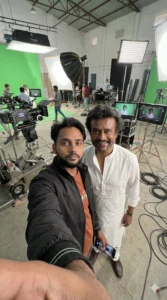 Create a vertical 9:16 ultra-wide, cinematic selfie-style image with a natural behind-the-scenes feel.