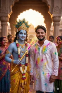 Aaj ke waqt me devotional AI trend aur bhi popular ho raha hai, jahan log Lord Krishna Holi AI Photo Editing Prompts ka istemal karke Krishna Holi inspired AI photos bana kar Instagram, WhatsApp aur Facebook par share karte hain.