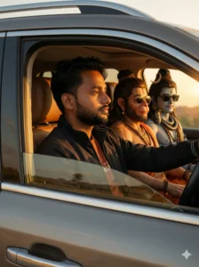 Aajkal AI editing trends me ek bahut hi unique concept viral ho raha hai “God Driving a Car”. Isme bhagwan ji ki divine presence, simple car, cinematic lighting aur spiritual aura ko ek saath dikhaya jaata hai. Ye visuals logon ko bahut pasand aa rhe hai or log ise apni image ke sath create karna chahte hai.
